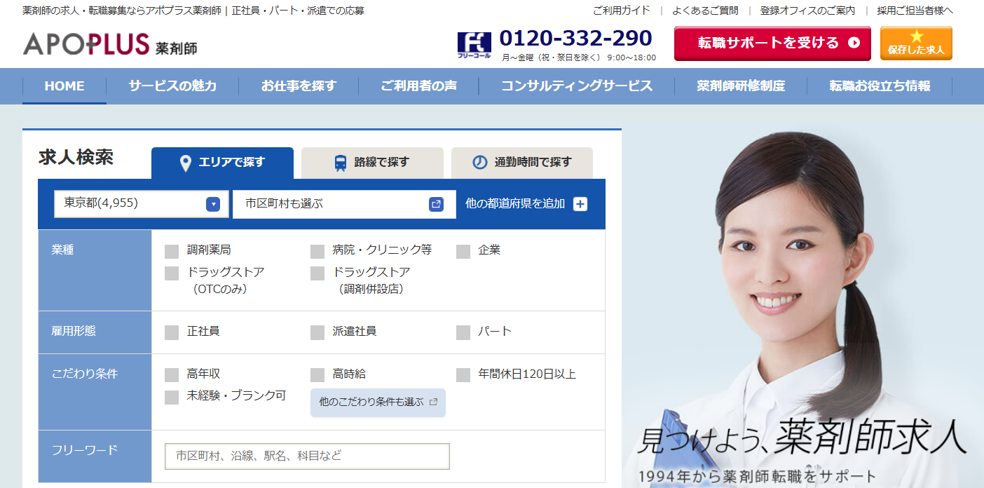 アポプラス薬剤師は薬剤師資格者専門で全国対応の転職紹介サービス